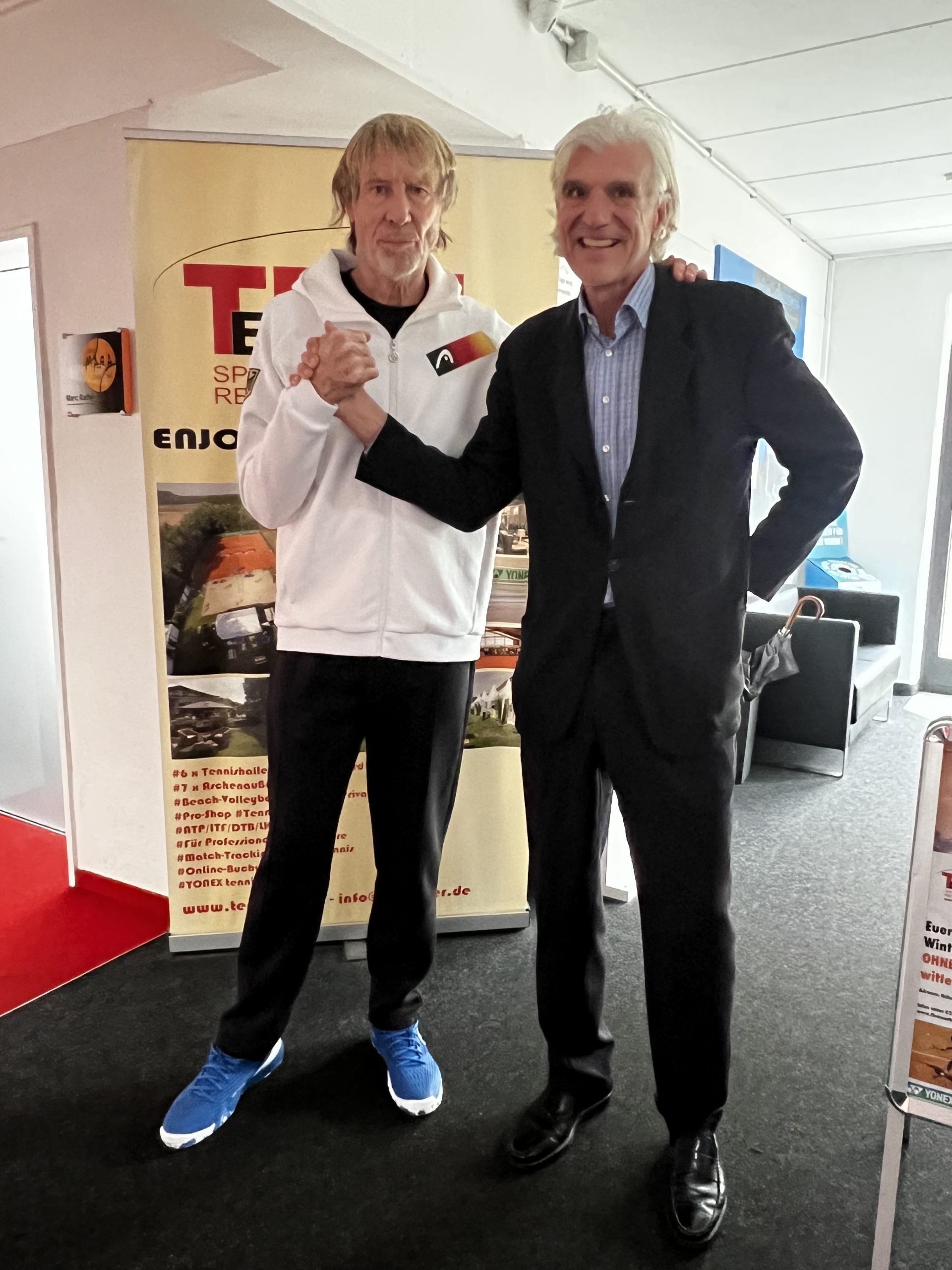 Meerbusch/Düsseldorf Anlässlich der Trainingseinheit des Deutschen Davis-Cup-Teams im Meerbuscher TeReMeer am 2. Februar 2026 trafen sich Christian Ohm, Geschäftsführer der Tennis Base Meerbusch e. V., und der ehemalige Hallen-Weltrekordler im
